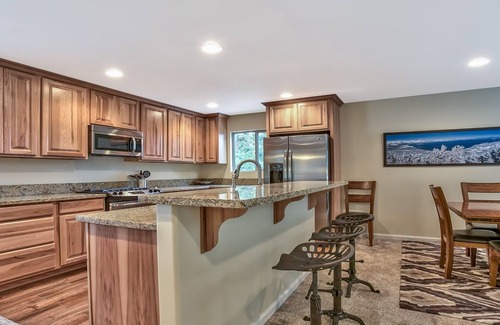 Only 6 steps to front door and 2 levels with separate entrances. Minutes to Heavenly ski lifts, hiking/biking trails and downtown Lake Tahoe and casinos. Perfect for guests who enjoy luxury and comfort. Loving attention to detail characterizes the house - from premium bedding to classy tableware. The kitchen is fully equipped with everything you need to prepare a meal. There is nothing left out to make you feel at home.