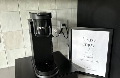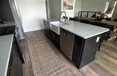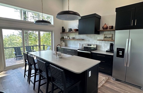 Our modern, gourmet kitchen is equipped with a Keurig with provided pods, dishwasher/utensils/cookware, microwave, refrigerator/range, blender, toaster, s'mores roasting sticks and more! High chair provided upon request in advance.