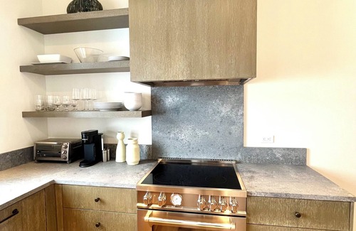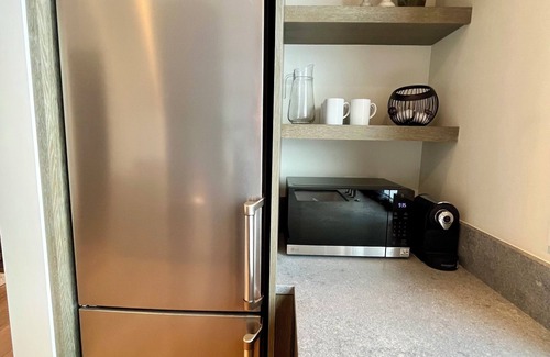 Kitchen: Fully equipped, including marble countertops, full-size stainless steel appliances, microwave, and both Nespresso and Keurig machines for your morning coffee fix