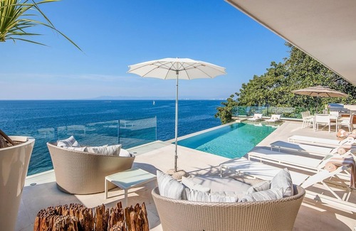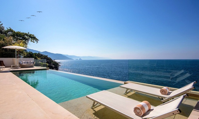 Imagine celebrating your special day at a stunning luxury ocean front property, just six minutes south of Puerto Vallarta. This magnificent villa is the quintessential wedding accommodation, offering breathtaking views of the Pacific Ocean and beautifully appointed living spaces that blend contemporary elegance with tropical charm. With five spacious bedrooms accommodating up to ten guests, you can host family reunions or invite close friends to share in your unforgettable destination wedding experience along the Mexican Riviera.