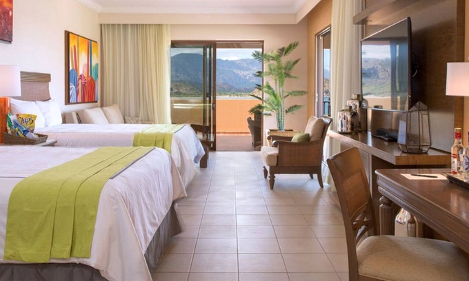 This 1,960-square-foot residential-like suites feature a huge terrace, with ocean, golf course, or mountain views. The Two Bedroom Suite has a master bedroom with an ultra-plush king-sized bed and a bathroom with a soaking tub and separate walk-in shower. The second bedroom has two queen-sized beds and its own private bathroom, while the expansive living room includes a queen-sized sofa bed, and an additional bathroom (3 in total) for the absolute comfort of all guests. These units are equipped with a full-size kitchen, dishwasher, washing machine and dryer, as well as the three LCD televisions, one in each room.