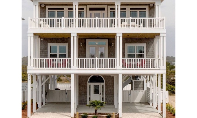 Best-rates for the Ocean Isle Beach house starts from $613 per night with includes Wellness Facilities, Kitchen, Laundry, Air Conditioner, Other, Pool, View, Wheelchair Accessible, Security/Safety, Fireplace/Heating, TV, Accessibility, Sports/Activities, Child Friendly, Parking, Private Pool, Ocean View, Balcony/Terrace, Oceanfront, Entertainment, Barbecue/Outdoor Cooking, Internet with all other amenities. Perfect for Weddings is committed to ensuring every guest experiences a comfortable and extraordinary stay, whether planning a romantic getaway, a honeymoon, a pet-friendly stay, or celebrating with the entire wedding party.