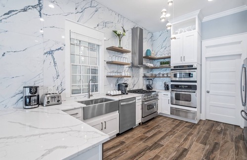 Fully stocked for cooking, includes a built-in ice maker, 2 dishwashers, 2 microwaves, 2 ovens, drink cooler, Keurig, air fryer