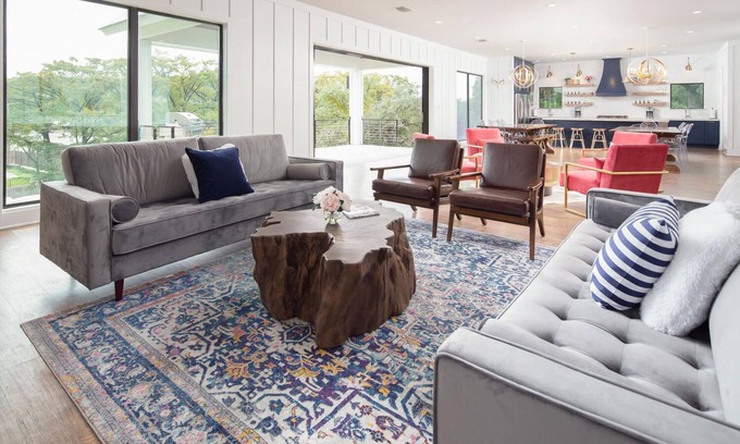 Luxury on the Guadalupe River! Across from Whitewater on the horseshoe is an exquisite getaway tailored for your dream wedding stay. With unparalleled amenities and a prime location, this property creates a stunning backdrop for large gatherings.