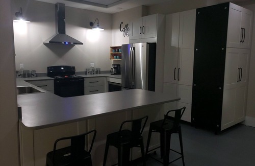 Lakefront walkout Basement Apartment with private entrance. Beautiful modern industrial design with amazing views from large picture windows. High 10 ft ceilings, large bedrooms, and large windows create an atmosphere of open space and roominess.