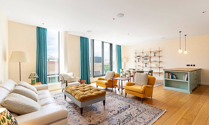 The living area is a lovely place to relax, where two inviting sofas beckon you to unwind in front of the smart TV. Culinary enthusiasts will adore the state-of-the-art kitchen, complete with a sociable breakfast bar and a dining table for four – perfect for savouring home-cooked feasts or takeaways from London's world-class eateries.