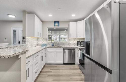 The Luxury Pool 5BR/3BA Launchpad is an exceptional wedding accommodation that combines comfort, space, and a picturesque setting for your special day. This fully renovated oasis features everything you need to create unforgettable memories with family and friends.