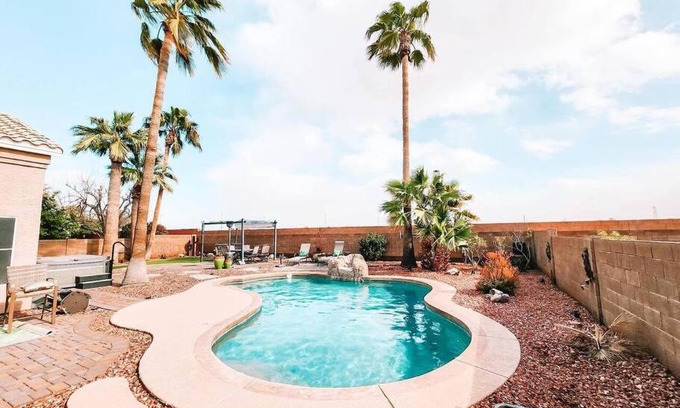 Luxury Pool Home! Amazing Back Yard Oasis is located in Avondale, just 18 miles from Copper Square and 18 miles from Phoenix Convention Center. This property offers a private pool and free private parking. State Farm Stadium is 10 miles from the villa and Arizona Capitol is 17 miles away. With free Wifi, this 4-bedroom villa provides a flat-screen TV, a washing machine, and a fully equipped kitchen with a dishwasher and oven. Towels and bed linen are featured in the villa. The property has an outdoor dining area. Burton Barr Library is 18 miles from the villa, while Phoenix Art Museum is 18 miles away. Phoenix Sky Harbor International Airport is 21 miles from the property.