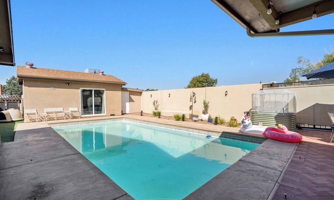 This spacious 3-bedroom, 2-bathroom main house features a private 1-bedroom casita with its own bathroom, comfortably accommodating up to 12 guests. Unwind in the refreshing pool after a day exploring Albuquerque. Whether you're seeking relaxation or adventure, this retreat perfectly balances comfort and style.