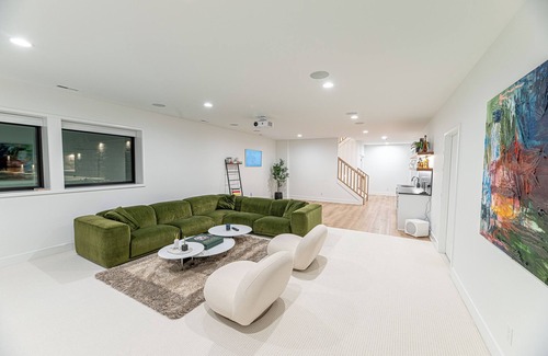 Make unforgettable memories in the state-of-the-art theater room with a 120-inch screen and laser projector. The sleek wet bar and home gym with a built-in sauna provide endless entertainment options.