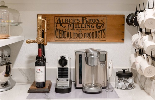 Stocked kitchen with top of the line appliances, coffee and Nespresso machine, and propane BBQ. Enjoy a meal surrounded by family or friends in the dining room, kitchen nook, or outdoor space.