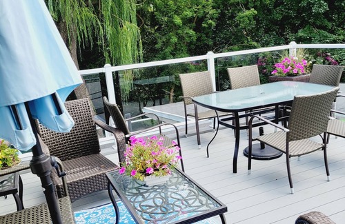 Beautiful spacious sunny ravine view suite with modern furnishings. Why stay in a hotel when you can enjoy 2 floors of beautiful modern living space with dining, living, kitchen, master, ensuite, deck and indoor pool (summer). Close to Pan Am sportsplex, Toronto Zoo, Scarborough Bluffs, Rosa Parks, Guldwood Park, Unionvile festivals, waterpark, Scarborough Town Centre and Cedarbrae malls.