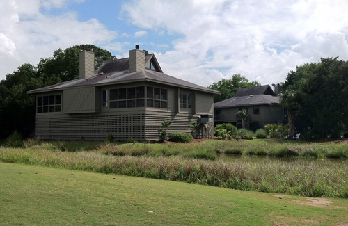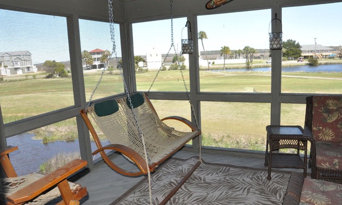 Experience Marsh views - Beautiful Unobstructed across the 7th Fairway to Big Bay Creek, and then miles of creeks and marshland. The Screened Porch includes both incredible Water and Golf views from the relaxing hammock swing or chairs. Our home is a short walk or golf cart ride to waterfront restaurants - Pressley's At the Marina, Dockside, Briny Swine, or Ella & Ollie's inside the resort.