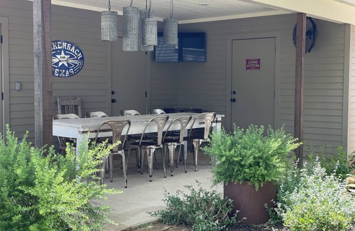 If you don’t want to cook maybe you can enjoy a take out meal at the large 8 person outdoor dining table. Afterwards play one of the many games from the indoor or outdoor game closets! Finish off your evening chilling out in the brand new luxury hot tub in the back yard or sitting around the fire pit. We think you’ll love our little getaway and Fredericksburg as much as we do!