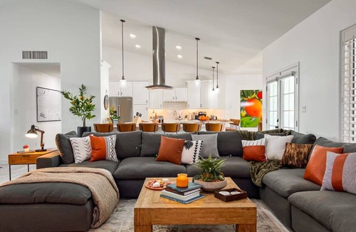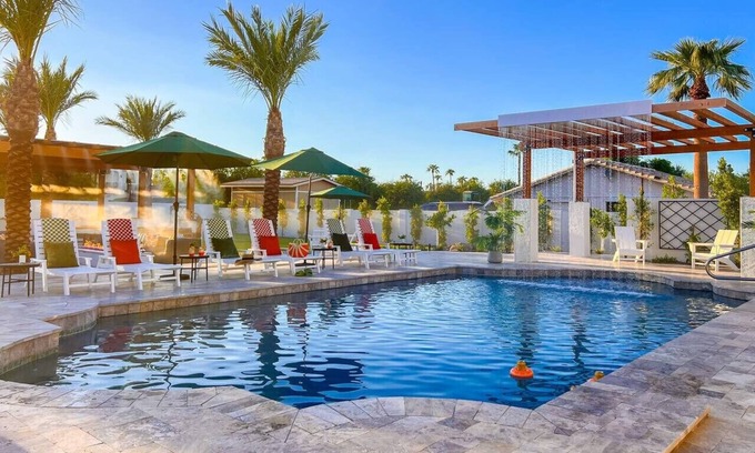 “This house was absolutely perfect in every way - and the newly finished and expanded outdoor space included Pickleball courts!!” – Tyler, ‘23 Immerse yourself in this ultimate mini-resort home for an unforgettable vacation. Take a dip in the sparkling pool and chill out on the loungers with a cold beer - on tap! Enjoy stunning indoor living spaces that enable you to spread out and spend quality time together, with enough room for privacy too. Ideally located for top Mesa attractions and beyond