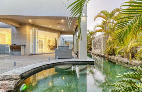 Luxury resort style villa pool by Custom Bnb Hosting is located in Pelican Waters.