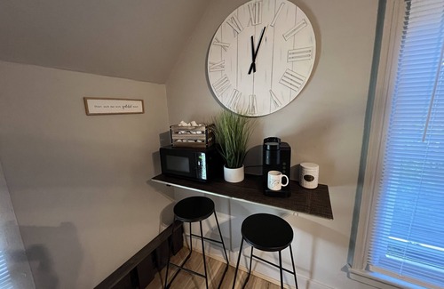 This gorgeous upstairs townhouse is very spacious. Newly renovated and remodeled. Look out the back window and you’ll see Suny Potsdam’s Crane! Eat in kitchen with all your basic cookware. Coffee Keurig with lots of coffee stocked for your stay.