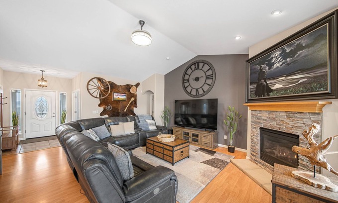 In Fernley's center lies a serene luxury escape that features five bedrooms with amenities that's perfect for your upcoming trip. Imagine yourself relaxing by the fireplace, sipping a warm beverage as you unwind from the day's adventures. With free high-speed WiFi and large smart TVs throughout, you can stay connected or enjoy your favorite shows. Explore the nearby Tesla Gigafactory or go fishing at spectacular Pyramid Lake, both just a 30-minute drive away, spend a day by the serene Truckee River, an 18-minute drive, watch adrenaline pumping motorcross/car racing at the revamped Fernley Speedway, minutes from your doorstep, venture out to popular Reno/Sparks casinos and nightlife, 30 minutes away or head to majestic Lake Tahoe, about an hour away. Back at the property, you'll find a fully stocked kitchen, perfect for whipping up delicious meals. Enjoy your creations at the dining table with 360 degree mountain views or fire up the grill for an alfresco feast. When it's time to wind down, retreat to one of the five bedrooms equipped with the most comfortable beds and high quality mattresses along with basic provisions of towels, soaps, toilet paper, and a hair dryer in the bathrooms. With air conditioning, heating, and linens provided, you'll be comfortable throughout your stay. Outdoor enthusiasts will delight in the fire pit and corn hole game, while dog owners will love the expansive privately fenced backyard where Fido can run around freely and those seeking a more relaxed pace can unwind on the outdoor furniture. Whether you're looking for a family getaway or a friends' retreat, this vacation home has everything you need for an unforgettable experience!