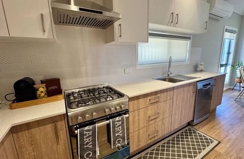 Inside you will find everything you need for an easy and memorable stay. The bedroom and living areas are spacious while offering a cosy and warm ambience for you to unwind and relax. Well insulated to remain cool in summer and warm in winter. Underfloor heating in the bathroom and double glased windows. Separate driveway with remote control access, lock up garage and carport available. EV Granny charger available .The main bedroom features a king size bed . the lounge room has a queen size lounge that is a sofa bed. We are bee keekers and in the rear of our one acre property we have our hives . We offer honey tasting of our raw and infused honey .Now that winter is coming our fire pit will be available.Under our star filled sky enjoy the warm fire and the views The winter chill is about the bathroom underfloor heating is now
