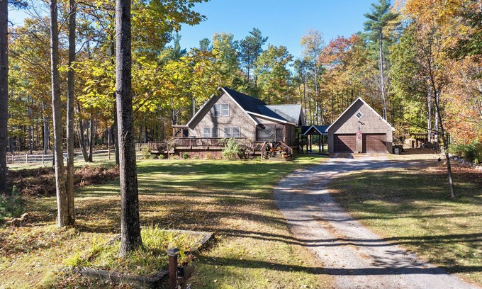 Welcome to Adirondack View Lodge—an elegant, custom-built retreat on 2 private acres with views of the Jay Mountain Range. This beautifully styled home combines classic Adirondack charm with modern luxury, offering multiple indoor and outdoor gathering spaces for family and friends. Wood beam accents and leather furnishings add warmth and comfort throughout.