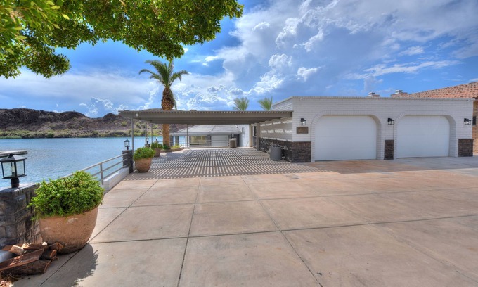 Kick back & relax in this luxury 4 bedroom 5 bathroom home located in a gated community on the riverfront. Enjoy the best views on a massive waterfront dock or watch the breathtaking Arizona sunsets on a 25ft custom cloud couch through the grand windows. This upscale getaway has 3 king rooms with private bathrooms connected, 1 room with 2 full beds, and a bathroom with a shower&bathtub across the hallway. Downstairs has a guest bathroom&shower. Feel free to message me with any questions!