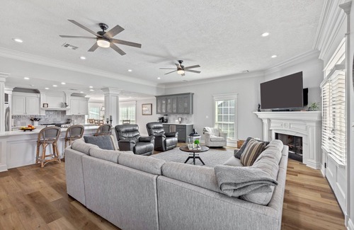 Best-rates for the Moss Bluff house starts from $694 per night with includes Child Friendly, Air Conditioner, Bedding/Linens, Wellness Facilities, Entertainment, Internet, Parking, Private Pool, Security/Safety, Fireplace/Heating, Laundry, TV, Ocean View, Kitchen, Pool, View, Balcony/Terrace, Sports/Activities, Barbecue/Outdoor Cooking with all other amenities. Perfect for Weddings is committed to ensuring every guest experiences a comfortable and extraordinary stay, whether planning a romantic getaway, a honeymoon, a pet-friendly stay, or celebrating with the entire wedding party.