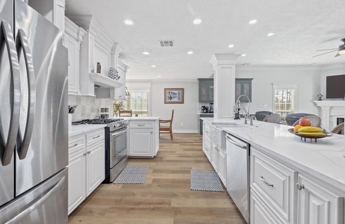 Come enjoy a relaxing stay at our waterfront family friendly vacation RiverHouse! Located on the West fork of the Calcasieu River, This house has it all! If you are looking for a weekend get away or bringing a crew for the week you won’t be disappointed . Bring your boat and enjoy endless adventures out on the river and bayous or stay on the dock with kids and pitch a line out. If chlorinated water is more your thing , pop open the umbrella and relax at the pool! Enjoy the grille outside, a fresh caught fish fry, or maybe a good ole Louisiana crawfish boil! Don’t want to cook then head into town just minutes away and experience the many restaurant and casino options that Lake Charles has to offer. Cap your night off in our spacious home that offers full kitchen open to large living room and dining table, beautiful master with King, two other private guest rooms that also have king beds, one guest room with queen , a bunk room that sleeps 6 .