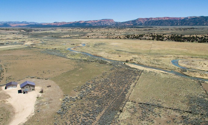 The Lookout is a luxury vacation rental for the discerning traveller located in Hatch on 3.5 acres of land, about 25 minutes to Bryce Canyon National Park and 50 minutes to the East entrance of Zion. It overlooks large pastures with the Sevier River meandering throughout, where you can watch cattle roam in the summer, as well as spectacular sunrises and sunsets over the back of Bryce Canyon (Paunsagunt Cliffs) which is right in front of the house. Most windows in the house have a breathtaking view, hence the name "Lookout". The property sits on 3.5 private acres with private Sevier River frontage for fishing. The river is known for 3 kinds of trout that are restocked periodically by the local fish hatchery.