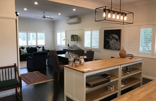 Stunning three bedroom house renovated to the highest standards, Tallowwood offers a spacious well-appointed kitchen, three separate living areas, sumptuous couches that make you want to grab a book and spend the afternoon reading in the sunlight. The North-East facing verandah is perfect for enjoying a coffee or glass of wine. A sprawling private garden includes a BBQ and dinning area with and and old fashioned cast iron bath that doubles as your plunge pool in summer. Great cafes, restaurants, the local heated and outdoor Olympic pool and cinema are just five minutes walk away, and the riverside cycle/walkway is on your doorstep.