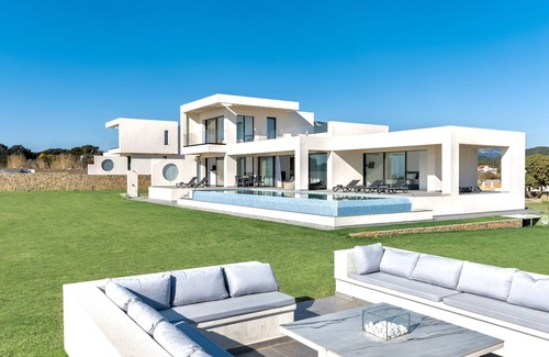 Observe the infinite sea from your villa. When the sun comes out, get out and sunbathe on the beach, two feet away from your luxurious property with direct access to it. In the evening, when the beach is quieter, admire an unforgettable sunset by the pool watching the sun skydiving to the sea from this point of view. An unforgettable experience you won't forget! The Villa is ideal for families or friends seeking relaxation and privacy.