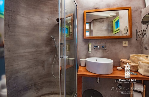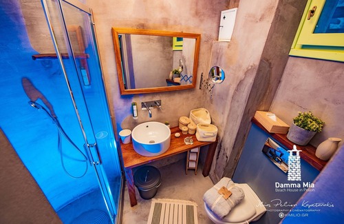 Facilities include Jacuzzi, free Wi-fi, 4Κ Smart TV 55”, satellite channels and free Netflix accounts, mini iPad, bluetooth sound system, eco friendly washing machine and dishwasher cleaner, coral gas and coal outdoor barbecue, beach towels etc. Two beach umbrellas and beach poufs exclusively for Damma Mia guests are reserved daily by the turquoise waters and sandy beach.