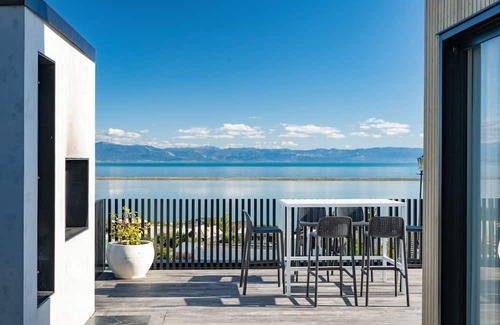 Award winning home in Atawhai Nelson, combines high end finishes and breath taking sea views, a spa pool under the stars and seamless indoor/ outdoor flow.
