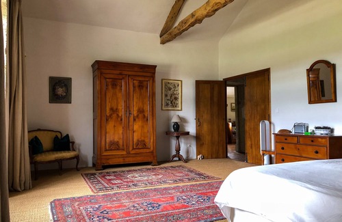 14C hilltop Restored Farmhouse and outbuildings set in 10 Acres of private land, accessed by 1/4 Mile drive through surrounding fields & forests. Stunning 360 degree views to the Pyrenees & the UNESCO cathedral of Condom which is 3Km away for local amenities. The house is set out over 450sqm & has 5 large bedrooms & en-suite bathrooms, sleeps 10-12. It also has a salt water pool, Wifi, HD TV (SKY, Streaming Services, French TV), Blu-ray/DVD, HiFi (indoor and outdoor) Table Tennis, Pool Table, huge selection of kids games & toys, outside covered dining area and for winter rentals the house is fully underfloor heated with open/stove fires.
