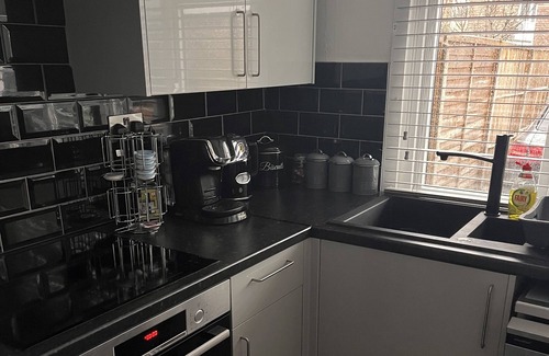 Stay in your own private bedroom with full use of the communal kitchen and bathrooms. Each room equipped with flat screen smart TVs, free WiFi, charging ports in touch lamps and your own costa coffee pods to use in the tassimo in the kitchen. Bed linen all made up for your arrival and clean fresh towels. The kitchen is stocked with tea, coffee, sugar, biscuits, salt, pepper and oil. free washing machine for your convenience and also a beautiful well kept outside area for relaxing and smoking area.