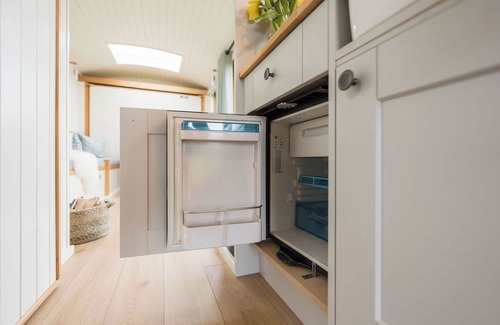 • Drop down Double Bed to snuggle under with a down filled duvet & cotton bedding