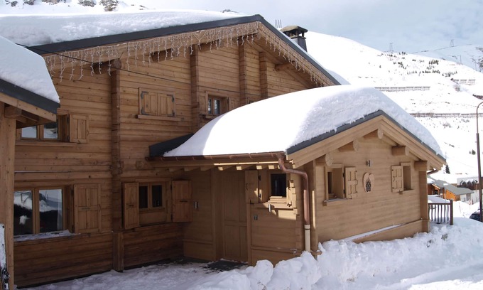 Large, very comfortable, top-of-the-range wooden chalet with ski-in and ski-out facilities. Chalet L'Ours Brun is located in the heart of the resort of Tignes at an altitude of 2100 m. It is served by two chairlifts giving access to all the sectors of the Espace Killy.