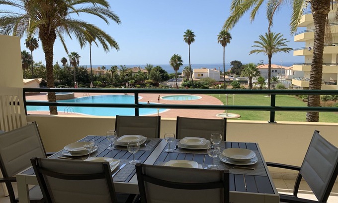 Spacious, luxurious 2 bedroom 2 bathroom unit with modern stylish kitchen. Located in safe and secure complex with lock up underground parking. The large balcony looks onto large palm garden and magnificent pool, jacuzzi and separate children's pool. A few meters further you view the Ocean at Lorenzo Beach that awaits you by only a 200m walk. Spacious relaxing lounge and dinning room has been newly furnished. Lounge has cable TV and the sleeper coach can sleep a further 2 children. Lounge and bedrooms open onto the balcony. Main bedroom has en-suite modern bathroom. 2nd bedroom has two single beds and a separate modern dual basin bathroom. Both bedrooms have a view of the ocean. Modern granite fully fitted kitchen with washing machine, dishwasher, microwave, oven, hob, fridge freezer and breakfast table. 300m to magnificent international supermarket.