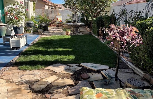Quiet upscale neighborhood, garden with covered patio, BBQ mini fridge coffee microwave toaster oven full kitchen available W/D