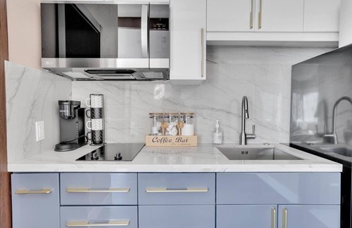 This unit offers stunning lake and mountain views, along with a spacious private balcony perfect for sunset watching. It features a full bathroom, walk-in closet, and a partial kitchen. As part of a larger home (guest suite), the unit has its own entrance at the back. Inside, there's a queen bed, sofa, coffee table, and TV, with an optional twin floor mattress available. Conveniently located 20-25 minutes from San Diego's top attractions, it's an ideal retreat for relaxation and exploration.