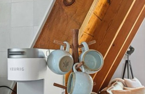The kitchen is fully-stocked with pots, pans, cooking utensils, an airfryer, a blender, and of course flatware and cutlery. There's a Keurig with K-cups for your morning coffees, including decaf options and an electric tea pot as well.