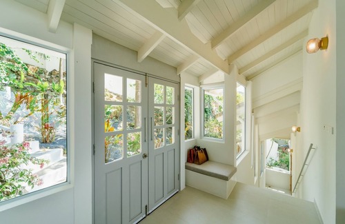 The villa is located atop a steep hill and offers a stunning three-level retreat. Experience the architectural nuances with various elevation changes from the front gate to the swimming pool. It's important to note that this property may not be suitable for guests with physical challenges.