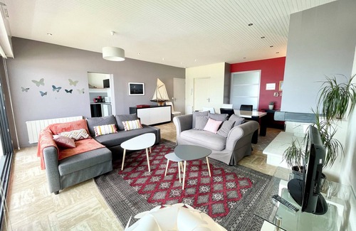Come and recharge your batteries with a stay in this beautifully decorated luxury seafront apartment with a warm atmosphere, in a quiet waterfront setting, over 80m2 on the 2nd floor (no elevator). 10 min walk from the town of Larmor-Plage.