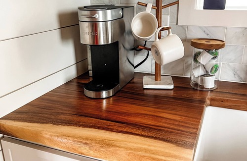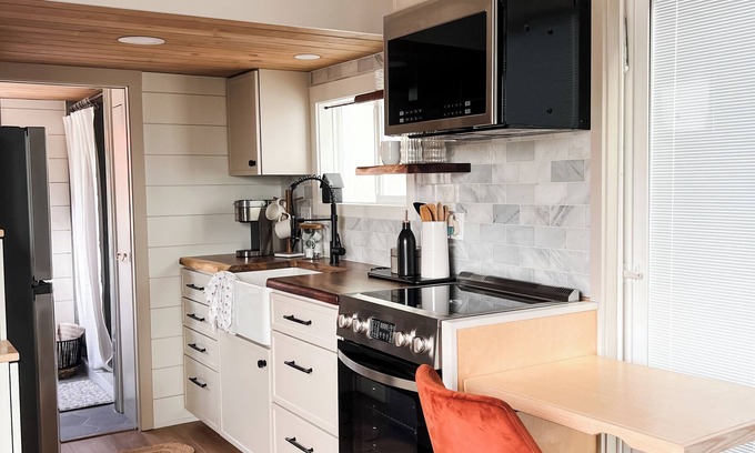 If you're seeking a couples' retreat or traveling solo, this tiny home features a fully equipped kitchen, a full-size bathroom, and a cozy loft sleeping area.