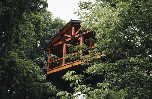 Luxury treehouse cabin overlooking Salt Creek. Nestled in the heart of Ohio's Amish Country. Enjoy biking, running, or walking on the beautiful Holmes Co. Rails To Trails, just a 1/4 mi. away. You will love the quiet and quaint rural setting, yet you are only a short drive from countless Amish Country attractions, great dining, and unique shopping opportunities. The cabin sits atop a wooded hillside where the front deck perches 30' above the winding and tranquil Salt Creek beneath you.