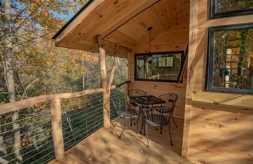 Enjoy the sounds of nature when you stay in this unique treehouse. Newly completed in the fall of 2023 by the DIY network featured "Treehouse Guys".