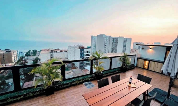 New, modern, elegant, and fully equipped triplex. It features an impressive private terrace with a BBQ (grill and "cajachina") where you can enjoy a panoramic view of the sea and breathtaking sunsets. It has 3 bedrooms with closets, 3 bathrooms (2 complete with Spanish showers and a half bathroom). Only 20 minutes from the airport and 15 minutes from Miraflores.