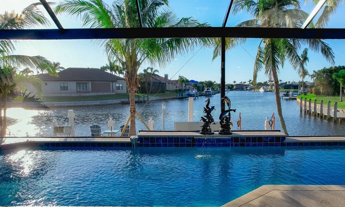 Luxury Tropical long waterfront view w/bikes,kayaks,golf clubs,beach gear incl is located in Burnt Store Isles. Luxury Tropical long waterfront view w/bikes,kayaks,golf clubs,beach gear incl provides accommodation, featuring Barbecue/Outdoor Cooking, Parking, Pool, among other amenities. This House features Barbecue/Outdoor Cooking, Parking, Pool, to make your stay a comfortable one.