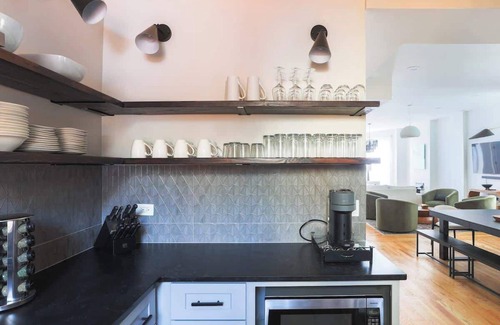 This exquisite property spans 2,500 square feet and boasts an open floor plan that seamlessly blends the living room and designer kitchen, creating an inviting space for entertainment and festive meals. You and your guests will enjoy high ceilings, modern contemporary art, and ample seating options, including a dining table that seats over 12 people. With six beautifully appointed bedrooms and four full bathrooms, everyone will feel right at home. Additional amenities like a private deck and proximity to public transport enhance your stay, ensuring ease and comfort throughout your time together.