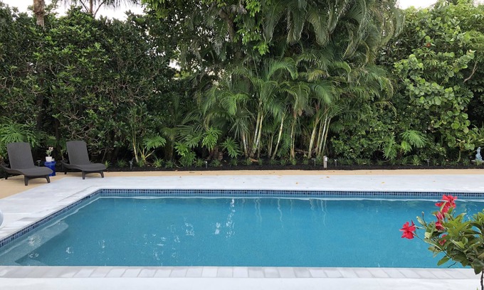 Come and relax in this newly renovated beautiful 3 Bedrooms and 3 Baths Home at Vero Beach Island, with large heated pool, only 5 minutes walk to a private beach. This home is located in a quiet residential beach neighborhood. Bicycles, surf boards, cooler, beach towels, chairs and umbrella are provided. Sunrise are the best!! Dedicated workspace. Washer and Dryer, Smart TVs 85", 65''.