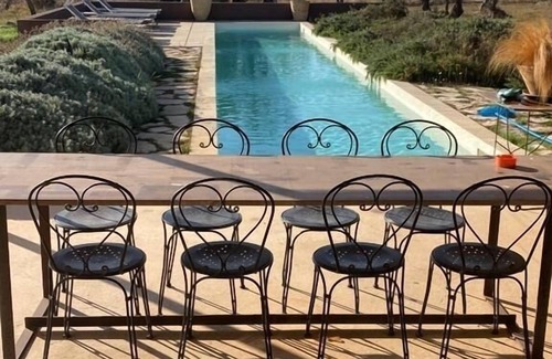 This exquisite property boasts spacious interiors designed by an artist couple, offering a unique blend of contemporary and Pugliese design elements. Each room tells a story filled with passion and creativity, featuring earthy tones and abundant natural light. The villa includes four double bedrooms, a fully-equipped kitchen, and expansive living areas that flow seamlessly to outdoor spaces where you can host pre-wedding gatherings or cozy evenings by the private pool. You will also enjoy amenities such as WiFi, climate control, a security system, and parking, ensuring comfort during your stay.